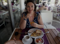 отдыхала Я и двое детей 7 и 10лет, впервых числах июня. Мы приехали после обеда. На ресепшене очень быстро зарегистрировали. Номер дали на 1 этаже потом по моей просьбе перевели на 6, но это отдельно расскажу. Т.к на обед мы опоздали, сказали можете перекусить в лобби баре. Великолепную выпечку и турецкие сладости мы и потом приходили отведать.
