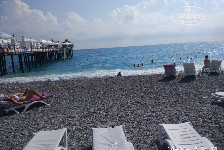Началось все прозаично - турагент вместо Гранады отправил сначала в Азура ДеЛюкс (там было замечательно),обещали заселить в Гранаду через 5 дней,но увы.Приехали сюда отбывать оставшиеся 9 дней(!).Алкоголь и напитки-хуже,чем в Аска Инн 4*-вроде импорт есть, но качество-ацетон. Пить можно только ликер и шампанское.Соки и октейли с юппи ужасного качества...В снек-баре обед для бедных-4 яблока и долька арбуза-видимо,за них надо драться, вялая картошка-фри, водяные арбузы.Премиум,как сказали на ресепшен,к классу отеля никакого отношения не имеет,это только название.У них в начале сезона поменялась концепция, но об этом нигде нет информации- в мини-баре вода и напитки при заезде, дальше только вода, мороженое - понедельник, среда, пятница-но за время нашего пребывания в отеле (3 долгих дня) его ни разу не было, т.к. что-то у них сломалось; после похода не гестрелейшн нашим детям выдали по 3 шарика мороженого индивидуально- то есть, оно все же было....В воскресенье анимация не работает; дискотека через день. Ресторан-отвратительно! Нет даже лукума и пахлавы, из фруктов яблоки,сливы и арбузы, картошка-концетрат, разведенный водой...Вкусно только в рыбном Аля-карт, куда мы сходили на день рождения дочери подруги. С днем рождения поздравляют-фрукты и вино, хоть ребенку и стукнуло 14 лет. Поздравить тортом и музыкой-50 $. Вай-фай только в лобби, но пробивается и на пляже, и в номере. Комнаты темные, в ванной 3 диодные лампы еле светят, нет ламп в коридорах-ходишь, как в катакомбах. Пляж-каменистый, были огромные волны, смельчаков, зашедших в воду, било волнами о камни - но красного флага, как и спасателя, видно не было. Видимо, спасение утопающих - ну вы понимаете. Это уровень санатория в Анапе, но никак не Ультра Олл 5*! Если вы в первый раз в Турции-вам тут может понравиться. Кто приехал не в первый раз, и сами сотрудники говорят,что отель сильно испортился, а хорошие отзывы-пустышка. При заселении нам предложили 2 комнаты - обе фэмили, но одна из них на 1 этаже с крохотным окном, и сотрудник на ресепшен посоветовал выбрать этаж повыше.