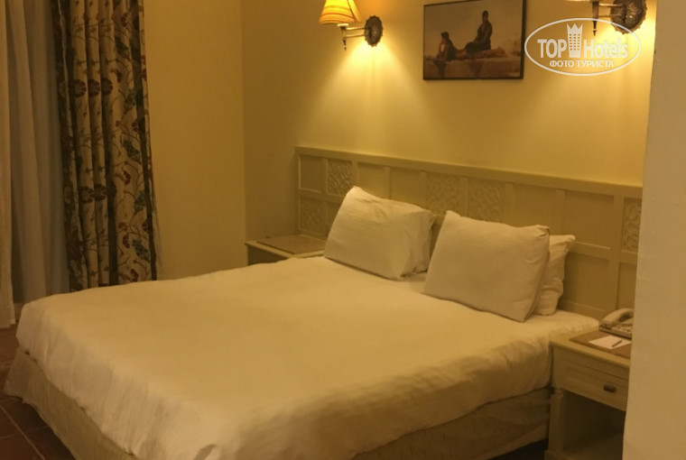 Отдыхали с мужем в этом отеле неделю. В день заезда с группой приехали в 11 вечера. Нам был обещан поздний ужин. Но это, скорее, было то, что осталось от основного ужина. Немного лазаньи, картофельное пюре, овощи-гриль и несколько сладостей. Заселили нас в прекрасный номер с видом на бассейн, за что администратор Salah потребовал с нас определённую мзду. Как потом сказал гид, мы вообще ничего не должны были давать, т.к. отель полупустой и они сами должны были заселить нас в хороший номер. Так же в номер были обещаны фрукты в честь годовщины свадьбы, но никто их не принёс, а мы не стали настаивать. Вообще, за сервис поставила твёрдую пятёрку, потому что кроме рецепции, все сотрудники отеля очень приветливые и отзывчивые. Даже простой уборщик, который щипает травку на газоне, обязательно поднимет голову и поздоровается первым, когда вы проходите мимо. Вообще поразила ухоженность территории - всё вылизано, убирается каждая соринка, очень много персонала следит за чистотой отеля. У нас был прекрасный уборщик номера Мохаммед - приветливый и дружелюбный, каждый день заходил и предлагал убрать, но нам каждодневная уборка была не нужна. Всегда спрашивал, всё ли нравится и старался исправлять любую неполадку - были проблемы с кондиционером и пультом от телевизора в первый день, но Мохаммед их быстро устранил.
