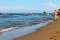 ПЛЯЖ песчаный (для нас было принципиально), обустроенный. Шезлонги, матрацы, полотенца – все бесплатно. Зонтики большие стационарные, пляж огромный, море прекрасное, заход плавный, может, даже слишком, хотя для детей самое то. На пляже уборка постоянно происходит, хотя мусора все-равно много, но это уже вопрос к отдыхающим: если мусорить постоянно, бросать окурки себе под ноги, то никакой сервис не поможет.