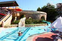 ТЕРРИТОРИЯ просто восхитительная. Ее уже многие описывали, есть фотки, поэтому, останавливаться не буду. Несколько бассейнов, много лежаков. Есть детские водные горки. С самой большой и взрослому интересно покататься. Это не полноценный аквапарк, конечно, да и работает только несколько часов в день (10:00-12:00 и 14:00-16:00), но в целом – здорово.