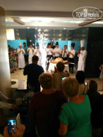 Также есть несколько тематических вечеров. По вторникам – рыбный день, т.е. на ужин разны варианты рыбы. А вот по пятницам чередуются: турецкая ночь и просто торжественный ужин (забыл как называется). Это что-то. У нас как раз выпало две пятницы. Перед ужином дают аперитив, все украшено, при входе в ресторан встречает вся команда ресторана и отеля, точек готовки больше, чем обычно. В ту пятницу, которая не турецкая )) вообще было целое шоу – обход официантами с полными подносами с напитками всего ресторана, огромный торт-мороженное с фейерверком, тосты от руководства отеля… это просто невозможно описать. Чувствуется, что сотрудники отеля стремятся создать именно праздник для гостей.
