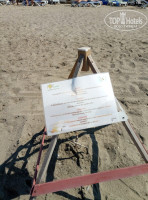Пляж вмещает всех, но шезлогов с утра может и не хватить, так было несколько дней. Убираются каждый день, но песок грабят не везде. Есть кладки черепах.