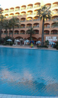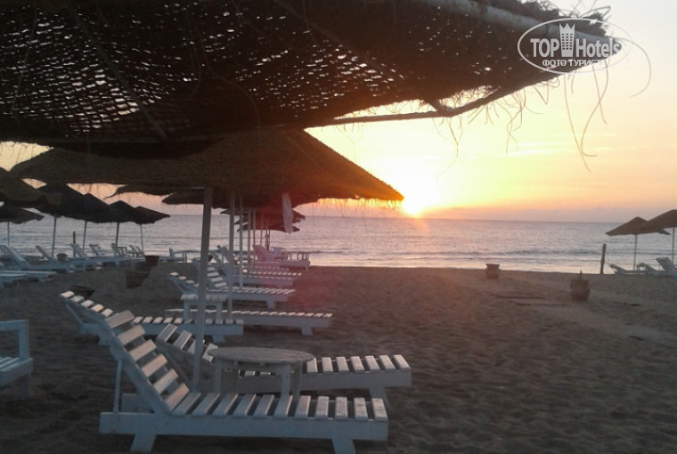 4. ПЛЯЖ. Лежаки и зонтики бесплатно. Рано открывают, рано закрывают. Есть выход к морю через два отеля, но ходить туда небезопасно, т.к. очень много местных приезжают на машинах искать легкой наживы и белого тела и твориться полный беспредел. Даже когда открыт пляж от отеля, выходишь к морю, то со всех сторон к тебе несутся знакомиться, каждый хочет пощупать - фууу, ну очень неприятно. Удовольствия от купания никакого. Расслабиться невозможно, постоянно на контроле. Солнышко можно встретить, если подняться на горку аквапарка, либо через дырки в сетке.