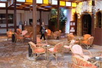 С поселением проблем не возникло, 10$ в паспорт, чётко формулируешь что хочешь и получаешь желаемое. Я за эти 10$ получил номер 395, ни золочёных унитазов, ни хрустальных люстр, ни огромных метражей, простой небольшой уютный чистый номер с тирассой выходящей прямо в пляж, большой удобной кроватью, телевизором с РТР и ОРТ, работающим! (хотя и жутко шумящим) кондиционером, вся сантехника почти новая, всё работало, всё везде стекало. Номер убирали каждый день, чтобы поменять полотенца бросаешь их на пол и во время уборки повешают новые. Постель меняли ежедневно. За уборку оставлял 2-5 фунтов в зависимости от настроения. Вода была всегда. Вообщем всё было хорошо. Клопов не было, а вот муравьи два раза заползали, но я дал им по 1 фунту и они ушли к соседям :)))