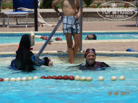 Отдыхали в данном отеле с 16 по 30 июня. В очередной раз мы остались очень довольны прибыванием в этом месте. На ресепшене, как впрочем и всегда, встретили хорошо. Т.к отель был полностью заполнен и стандартов свободных не было, нас на одну ночь поселили в фемели двухкомнатный на первом этаже. Мы не были этому против, т.к понимали всю ситуацию. На следующий день в 12.00 нам благополучно поменяли номер и поселили нас в стандарт на третьем этаже с хорошим видом на аква парк. Большое спасибо за это! Никто никаких денег не просил. Спасибо Кристине за помощь и участие в решении всех моментов и вопросов во время отдыха !!!!! Про отель долго писать не буду, т.к много писала в своих предыдущих отзывах об этом отеле. Питание хорошее, все свежее, никто из нас в том числе и ребенок , проблем с животами не имели. Официанты работают хорошо, большое спасибо работнику ресторана Медитерраннен Ахмеду Султану, очень внимательный человек и знает свою работу. После окончания рамадана в отель приехали очень много местных семей. Конечно они шумные, семьи у них очень большие, они гуляют и развлекаются от души. Мы к этому всему отнеслись с пониманием и нас все это не напрягало, больше удивляло и было интересно за ними наблюдать. Море , как всегда, прекрасное!!!!! Мы очень боялись июньской жары, но не так страшен черт. Первые два дня было тяжеловато, старались днем быть в комнате. Потом, к нашему удивлению, жара так уже не ощущалась сильно. Но солнце очень пекучее!!!!!! У нас были крема 50 и 30 защита, так даже с кремами мы умудрились обгореть. Ну ничего, это все поправимо и не страшно, и на наш отдых не повлияло. Мужу очень понравилось играть в вотерпол. Спасибо аниматорам за организацию игр!!!! В общем, отдых удался. Мы любим сеть Альбатрос, и желаем дальнейшего процветания!!!