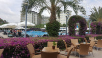 О территории- она очень красивая, уютная, зеленая и ухоженная! Большой бассейн, отдельно бассейны с горками для детей и взрослых. Амфитеатр для вечерних представлений, снек бары, домики Бали) Но на пляже очень мало лежаков, абсолютно не рассчитано на такой огромный отель. Непонятно, какая проблема поставить больше, не такие это огромные деньги. Мы ходили на пирс, там еще реально было приткнуться. Ну и все знают, как любят делать многие отдыхающие- оставлять свои полотенца на лежаках на целый день, независимо от того, сколько времени рассчитывают там провести. Если бы такого «бронирования» не было, то все бы могли нормально отдыхать и загорать! Во многих странах и отелях так делать запрещено, просто скидывают полотенца и все. Ну и не берите на пляж ничего ценного. Утаскивали полотенца, надувные матрасы, и пр...(