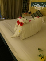 УБОРКА комнаты была ежедневная, неплохая, но без фанатизма. Иногда замечала, что пол не был вымыт, но на следующий день всё уже было чисто. Но ведь и дома мы каждый день полы не моем, а постель уж точно не меняем ежедневно, а тут меняли! Полотенца на пол не бросали, их нам и так меняли постоянно. Банные принадлежности пополнялись регулярно, как и чай, кофе и сливки к чайному набору. Наш уборщик, Мохаммад, умничка: поднимал нам настроение интересными фигурками на кровати. Не каждый день, конечно, но 4 фигурки за 2 недели мы получили. Очень важно, что эти приятности тоже не зависели от чаевых!
