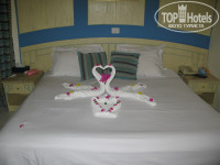 ЗАСЕЛЕНИЕ. Приехали мы в отель на такси в 5.30 утра и были готовы ждать заселения у бассейна (положили всё необходимое в ручную кладь). Нам предложили немного погулять по территории, территория была знакомой, поэтому гуляли мы только час, а когда в 6.30 мы вернулись на Ресепшен, нас пригласили получить браслеты и ключи от номера, что приятно удивило, так первый день отдыха обещал не быть урезанным. Я хорошо помнила расположение корпусов, поэтому сначала мне показалось, что корпус, который нам предлагают, расположен далеко от главного ресторана, хотелось поближе. Тогда сотрудник предложил нам сначала осмотреть номер, а потом, если не понравится, выбрать другой. Нас отвезли на электромобиле к нашему корпусу №33, ближайший к лифту на пляж и морю. Войдя в номер, я поняла, что именно тут я хочу жить. Вместо оплаченного стандарта – большой номер с прямым видом на море, чистый, с аккуратной ванной, полной всем необходимым, в комнате плазма, отлично работающий холодильник. Что ещё нужно для 2-х недель отдыха?! Возвращаться было даже несколько стыдно… Сотрудник ресепшен с довольным видом сказал: «Я же говорил, что вам понравится!». Хочу сразу отметить, что НИКАКИХ денег мы не давали. После заселения преподнесли в качестве презента шоколадку и пакет семечек. Египтяне это любят и были рады. Замечу, что в этом отеле НИКТО не требовал чаевых, все сотрудники работали прекрасно и искренне. Поэтому и отблагодарить ребят хотелось от души. Не замечала ни разу, чтобы отношение персонала к гостям отличалось в зависимости от чаевых. Вывод: менеджмент в отеле замечательный!