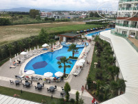 Всем добрый день! Делюсь своими впечатлениями об отеле: сказать, что отдохнули хорошо- это значит ничего не сказать! Нам понравилось абсолютно ВСЁ!!! Отдыхали с 26 мая по 8 июня- это были самые лучшие дни!!! Это действительно отдых: ешь, пей нехочу... Отель шикарный: много зон для отдыха- выпить чашечку турецкого кофе или бокал вина можно с 10:00 в лобби баре или вниз по лестнице бар; 5 хороших бассейнов для малышей и до +18; аквапарк супер работает 2 раза в день. Питание отличное, голодным не останешься, особенно обед и ужин. От такого разнообразия еды глаза разбегаются!!! Много мяса и рыбы, различные гарниры, супы, овощи, фрукты, торты и пирожные- обязательно попробуйте всё!!! Море: на море возит автобус каждые 15 минут, у отеля свой пляж: много лежаков, кто пораньше пришёл тот поближе к морю и расположется. Можно вообще с моря не уходить: там же и пообедать, как мы и сделали в первый день, но правда, тяжеловато. Территория отеля ухоженная, много цветов. Написала, конечно, не всё. Завидую белой завистью тем, кто будет отдыхать в этом отеле!