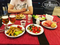 Всем привет! Путевка наша стоила на двоих 50 000 на 7 дней. Приехали мы вечером, у нас взяли ваучер для регистрации и багаж. Проводили в ресторан на ужин. По еде все ок, нам хватало: рыба, говядина, курица, перепела, печень говяжья на гриле, язык, различные гарниры, овощи,сладостей море, персики, нектарины, абрикосы, арбуз, яблоки, апельсины, разные напитки, снек бар, лепешки, пицца , мороженое. Голодными Вы там точно не будете. Персонал весь отзывчивый и вежливый!
