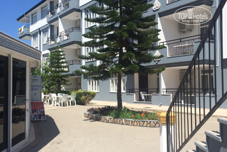 Начнем с самого начала: приехали ночью, когда зашли на территорию отели были удивлены, что нет ресепшна, хозяин Онур выдал ключи, парнишка,работающий там проводил нас. Наш номер оказался на 1этаже , зайдя туда я была в шоке, полы грязные, душевая в не очень хорошем состоянии, я сразу спросила можно ли номер повыше этажом, на что парнишка посмеялся и сказал no! Так и легли спать в шоке. Номер вообще странный, кухонный гарнитур , который не туда не суда, балкон с окном от другого номера и прямо перед бассейном и столом обеденной зоны. в итоге на след. день номер нам поменяли, но только потому что что хозяину потребовался наш номер! Что касается питания, оно было однообразным, картошка за все время настолько надоела! Мяса практически не было, а если и было то порционно! И была настоящая очередь,я думаю такого вообще не должно быть ни в одном отеле! Море: ужасно далеко, турагент уверяла что отель на первой(!!!) линии! Ладно нам молодым не сложно было идти, но были и взрослые люди, и с детьми и никто не был в восторге в расположенности отеля от моря.Сам пляж хороший, шезлонги,зонты все есть. Бассейн:хороший,вроде чистый всегда,чистили при нас раза 3. Но(!!) зонтов на всех не хватает, шезлонги сломанные,лежаки порванные и не фиксируются (не все конечно,но большая часть). Бар: пиво на любителя, вино белое кислушка, водка разбавленная, джин более менее. Соки сплошная химия. Кофе,чай вкусные. Вода с кулером всегда и бесплатно. Уборка: предлагали каждый день, но мы просили по мере необходимости, меняли только полотенца, за 11 дннй ни разу не предложили поменять постельное белье. В целом отдых был не плохим, потому что ходить и злится,быть не довольным в отпускн не очень то и хотелось)) Пришлось принять все как есть и спокойно доотдыхать. Кстати к концу нашего отдыха открыли массажную комнату, 10 долларов спина и 20 долларов полностью тело. Вернутся второй раз в отель не хотела бы!