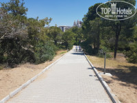 Из отеля идет дорога к морю идти минут 7-10 зависит от вас, дорожка проходит мимо соснового леска.