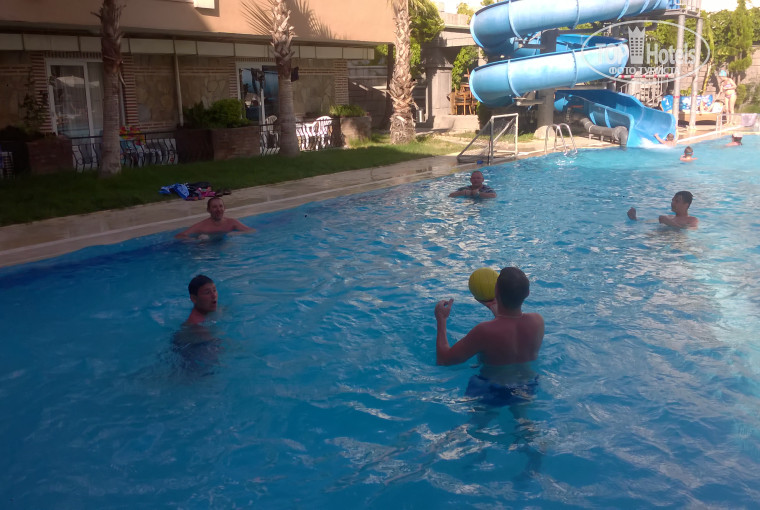В Турции не первый раз, отдыхали до этого и в тройке и в четверках и в пятёрке. Есть с чем сравнить. Заселили нас только на третьи сутки. Две ночи мы провели в каком-то гостином доме в километре ходьбы от отеля. Эта ситуация здесь ежедневно происходит. Номеров не хватает. Взамен дали бесплатный вайфай (который еле тянет) и сейф в пользование. Конечно, этот отель на 4 звезды не тянет. Питание - самый большой минус. Грязный ресторан (я бы это назвала столовой), пластмассовая посуда, которую очень плохо моют. Сидеть за столами неприятно, нет даже скатертей. В ресторане очень душно, кондиционеры не работают. Питание очень скудное. Нет даже булочек, которые и в трешках дают, только батон. На завтрак чередуют блинчики и омлет. На обед курицу, соевую колбасу и рыбу. То есть один день курица, другой сосиски, третий рыба. Молоко не молоко вовсе. Сладостей практически не дают, а если и дают, то один поднос маленьких пирожных, которые тут же разлетаются, всем не хватает. Из плюсов - море рядом, лежаки матрацы есть. Очень вялая, но все же анимация, присутствует. Горка работает весь день. Номера на 1 и 2 этажах хорошие, но убирают плохо.