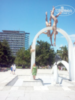 Добрались от границе на маршрутке за 200 руб с человека.Водитель нас довез до корпуса приемного покоя.Нас быстро оформили и сразу отвезли на маршрутке до нашего корпуса.Было утро нам предложили немножко подождать и через полчаса заселили в номер на 8 этаже с видом на море.Вечером засыпали под шум моря.Номер чистый,В номере раковина и балкон.Было холодно принесли одеяла.Горничная замечательная приходила убирать ежедневно-но мы просили вынести только мусор.Пляж шикарный места много,рядом столовая.Лифт работал без проблем.Интернет в номерах ловил не очень но сносно.С балкона наблюдали стаи дельфинов ежедневно-не нужно было идти в дельфинарий.На этаже туалет на 3 кабинки всегда свободный и чистый.Напротив такой же душ -тоже на 3 душевых просторный и чистый.На этаже чайник и гладильная доска с утюгом.Внизу корпуса магазин со всякими пляжными товарами.На выходе фруктовая лавка там фрукты были не дорогие(персики местные от 80 рублей,мушмула от 60 рублей и проч) и прокат велосипедов с утра и допоздна по 100 час (велосипеды не плохие в хорошем состоянии).Набережная длинная много всяких странных скульптур..до центра можно дойти и по лесу за корпусами.На велосипедах мы объезжали все корпуса и доезжали до центра Пицунды за полчаса .В центре экскурсионные бюро,магазины, кафе,старинный храм с органом.Цены в Пицунде не высокие по сравнению с Гагрой.Например банка ледяной Колы 0.33 стоит всего 25 рублей! Приятная мелочь.У нас в Краснодаре давно 42 рубля. Шашлык в Новом Афоне 230 рублей -200 грамм порция.Шаурма по 150 рублей.Шаурму лучше брать у таджиков-у них вкусней и больше у абхазов она не вкусная и с отвратным привкусом..Хамов я не встречала.Везде все доброжелательные и адекватные.Если относится к людям с уважением и пониманием то и к тебе также будут относиться.Персонал спокойный и не навязчивый.За период нашего отдыха 5 дней-погода была разная-дождь и солнце,штиль и шторм,холод и жара.На пляже бесплатные лежаки-натуральные из дерева -всем хватало.В пансионате выдавали по 2 полотенца на человека.Везде,всюду и всегда много больших собак.Собаки безобидные привязывались к туристам провожая вечером до корпусов и выпрашивая еду. Вечером на набережной в центре нет освещения и далее по набережной после 3 го корпуса-тьма кромешная.Ярко освещены только кафе.Хотя несколько фонарей все-таки есть.