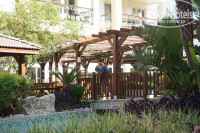6.Территория.Бросается в глаза острая нехватка персонала,от этого и везде все не доделано,не дотерто,а в итоге грязно,урны полные,мусор валяется,кусты не стрижены.Зато есть речка,в ней живет гусь,черепахи и одна огромная "тартила",с метр в диаметр,увидеть ее можно только рано утром.