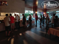 4.Питание.Удручающее и не соответствующее заявленному классу и ценнику.Это мое субъективное мнение.Кто то скажет голодными не будете точно,да-это факт,но можно не быть голодными и в 4* за цену в 2 раза дешевле,а при ценнике под 200 тыс ультраолл,хотелось бы чтоб,было разнообразно и как минимум заявленные напитки присутствовали,но нет.На завтрак нет сладостей(пирожные,пахлава),остальное стандарт-яичница,оладьи,джемы,йогурт.На обед нет гриля и нет рыбы,норм рыбы,есть или селедка жаренная или скумбрия,и то и др не съедобно.За картошкой фри-всегда очередь,половина столов,на которых должна стоять еда,пустуют.На ужин очередь за рыбой и индейкой гриль -по 15 человек,на фото видно.Но как + отмечу ,что фруктов было достаточно-арбузы,дыни,абрикосы очень вкусные,яблоки,черешня,нектарины и персики,бананы и виноград