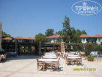 Отдыхали с 11.08.09 по 18.08.09. В целом очень хорошее впечатление.Территория очень ухоженная травку и кустики всякие стригут every day, маловато пальм,конечно,но все равно очень миленькая территория. Главное здание (в котором собственно и проживали) в довольо приличном состоянии, номера хорошие, уборку и смену полотенец провдили каждый день без напоминаний, табличек на ручке двери и чаевых. По поводу второго здания ничего сказать не могу внешне очень симпатичный, увитый плющем, вокруг него кустати гораздо больше зелени, чем у главного. Почитав отзывы почему то решили что жить будем обязательно в главном здании, по приезде пытались запихнуть в Anex, но 50$ на ресепшене делают свое дело и вот пожалуйста номер с видом на море. Питание ни плохое и ни хорошее, я бы сказала немного однообразное. В принципе ассортимент блюд в некоторые дни мог быть бы и разнообразнее. Соки из машинок соками назвала бы с большой натяжкой, вино разбавлено капитально. Режим питания был UAI (подразумевал под собой кроме всего прочего 6 иностранных алкогольных напитков, которые оказались местными аналогами) не оправдал себя, немногочисленные иностраннцы оказались умнее тип питания у них AI, о чем говорили оранжевые браслетики. Короче разницы между UAI и AI не обнаружила. Шампанское лучше не пить это просто гадость. О коктелях у барменов имеется свое представление, налить могут в стакан все что угодно, но получается как ни странно довольно вкусно. Проблем со столами за завтраком обедом и ужином нет. POOL bar работает с 10.00 до 24.00, Лоби бар - круглосуточно ( но очень медленные бармены).еще есть закуски в Snack bar с 12.30 до 16.00, который по вечером (кроме среды) превращается в ресторан A'la Carte (итальянский -вторник пятница воскресенье; рыбный-понедельник, четверг, суббота) по предварительной резервации на следующий день. Для любителей поиграть в саранчу ближе к полуночи есть ночной буфет в рестаране с 23.00-23.30. По средам турецкая ночь, в пятницу живая музыка. Все очень приветливые милые люди, улыбаются в 32 зуба. Дети при деле днем кормят рыб, вечером отплясывают с аниматором под одну и ту же музыку. Анимация плохая, но аниматоры красивые. дискотека номинально присутствует, но кроме скучающего DJ и аниматоров там никого нет. Есть кальянчик, очень милый мальчик предложит вам покурить его всего за 10$. Теперь про пляж лежаки занимать приходилось с утра в день заезда, придя на пляж 10 часов свободных уже не оказалось. Впредь были умнее, хотя через пару дней народ как-то схлынул и проблем с лежаками у моря не было, чего не скажешь про бассейн, с 7 часов свободных лежаков уже нет, людей на них в это время вобщем то тоже нет но вещи уже побросали. Море очень очень очень чистое около пирса плавают рыбы что лично мне было не очень приятно (прикормили аниматоры). Пляж меленькая галька, чистый . Вход в море хороший. Позади отеля великолепный вид на горы особенно хорошо видно из моря когда не скрыты дымкой что бывает не часто. На горах растут сосны, очень красиво воздух супер. Карты телефонные дешевле покупать у местных торговцев, а не в отеле и не у гидов.