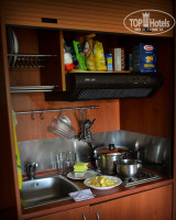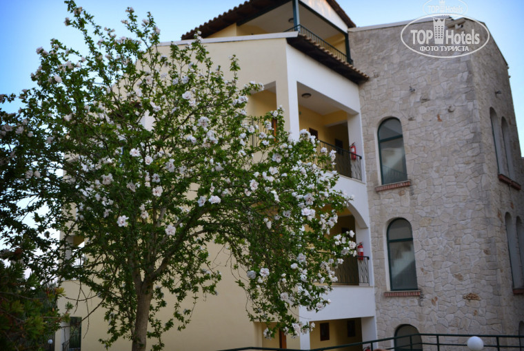 НОМЕР. Нас поселили на первом этаже в корпусе В, всего их 3 (А, В, С), самый лучший, на мой взгляд, это корпус С, тут вам и вид на море, и удаленность от прилегающей к отелю, достаточно шумной (в тихое время) дороги. Ещё такая деталь, лифта в этом 4-х этажном отеле нет, горничная поделилась, что многие детные семьи возмущаются. Что же досталось нам? А вот что: темноватый номер с панорамой на оливковую рощицу. Не так я себе всё представляла. К тому же, пол в номере был ну просто ледяной, стоять невозможно, как выяснилось позже, май в Греции выдался нетипично прохладным, видимо, номера просто не успели прогреться. Ситуация изменилась только через неделю, после постоянного проветривания комнаты. Но сначала, мне просто хотелось плакать, не знаю, как другие малыши, но наш категорически отказывался ходить по полу в обуви или носках, мы же - взрослые, ходили в сланцах. И ЕЩЁ, он очень-очень скользкий, особенно когда влажный. Мебель меня не смутила, не новая, но приличная. Функциональная встроенная кухня, в ней есть всё, кроме режущих ножей (посуда, кастрюли, сковорода, тарелки, стаканы, столовые приборы, чайник, тостер, холодильник, двухкомфорочная плита). Отдельный, безусловный плюс, это наличие в номере гладильной доски и утюга. Как уже писали ранее, пульта от телевизора в номере нет, и у кого его спрашивать мы разбираться не стали, обошлись. А вот без чего было сложно обойтись, так это без интернета, но выход есть. В сувенирном магазинчике, при отеле, можно приобрести пароль Wi-Fi, мы заплатили 10 евро за 3 часа (главное! не забывайте каждый раз отключаться!) Душ((( подтверждаю предыдущие отзывы: маленький, вода то холодная, то резко горячая, всё проливается на пол, куча луж, скользко и постоянное ощущение сырости. Запасы геля и мыла безупречно пополнялись. Как я поняла, бельё меняют 1 раз в неделю, а простыни и полотенца через день. Номер убирали на 4 -, в основном претензии касались чистоты балкона и пола, но это, видимо, как повезёт, однако, оставленный нами на кровати 1 евро, исправно исчезал. А может, просто мало было... этого 1 евро?))) Большая слышимость, и правда, имеет место быть. Балконы разделены решетками, это не моё были всё время, как на сцене, расслабиться вечером не получалось. И, как вишенка на торте МУРАВЬИ, может это конечно бонус только первого этажа, но знаете ли, когда они ползают по пастели, а ночью и по вам..., сомнительное удовольствие.
