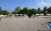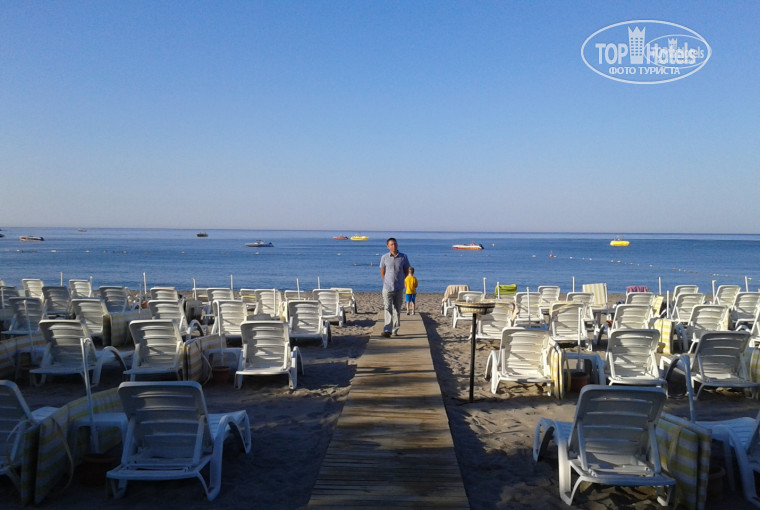 МОРЕ !!! Это то ради чего мы ехали!!! Отличный песчаный пляж, широкий, шезлонгов много, приходили в любое время и всегда находили свободные шезлонги в первых рядах. Заход в море мелкая галька и камушки, мы не брали специальную обувь, нам было нормально. Море очень чистое, водичка прозрачная, один день приплывал мелкий мусор, больше не было. С утра море спокойное, после обеда и вечером есть небольшие волны. Слева от пляжа есть красивый мыс с сосновым лесом, с него красивые виды на море и побережье. Справа от пляжа каменистый мыс, тоже можно сходить прогуляться до него.