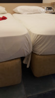 1. Жили в номере family 1102 окнами на основной бассейн. Никаких тапок, халатов и чайника не было и в помине. Зато были: дырявые, грязные в пятнах простыни, драные и изношенные душевые полотенца, разъезжающиеся в разные стороны кровати( вместо одной большой), ветхие и затасканные пляжные полотенца( больше похожие на солдатские портянки), пара муравейников в номере и неопознанное животное, похожее на мышь, которое бегало в вентиляции. Чаевые ситуацию не исправляли.