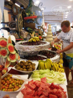 разнообразное. Много фруктов (очень много, свежие, хватает на весь период завтрака-ужина, даже если приходишь к концу). Периодически устраивают фруктовые вечеринки. Очередей практически нет,отдельно детская кухня. На завтрак молочные каши (всегда), на обед -ужин всегда несколько видов супа. Так же на завтрак всегда апельсиновые фрэши, несколько видов сыров, колбасы, вафли, всевозможная выпечка в большом ассортименте. На обед всегда несколько видов мяса, рыба, соленья. Подробно расписывать не буду, но все очень вкусное, и голодными никто не оставался. Шеф повар лично во все приемы пищи ходит, помогает по кухне, проверяет качество блюд. Перекусы (типа мороженного и кексов) в большом ассортименте, так же без очередей. Есть и бургеры, хотдоги, шавермы. Из напитков есть соки, любая газировка, пиво, чай, кофе. коктейли. По алкоголю сказать не могу, тк не увлекаемся.Вода (охлажденная) всегда есть во всех барах. В номере пополняемый мини бар(бесплатно). Есть три ресторана, в которые мы не ходили, тк устраивало питание в основном зале. По предварительной записи, но так же бесплатно.Официанты убирают оперативно, и всегда подходят, чтобы принести напиток (любой).