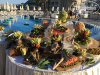 ПИТАНИЕ в отеле выше всяких похвал - такое изобилие можно только представить, выбор блюд такой, что невозможно всё успеть попробовать и всё очень вкусное. свежее (в меню отеля 700 блюд). На завтрак готовят яичницу, омлеты, оладушки или блинчики, жарят сыр (очень вкусный), жарят пончики, очень большой выбор выпечки: кексы, круассаны, ватрушки с ягодами, булочки с шоколадом и орешками, булочки типа штрудель, я как сладкоежка не могла пройти мимо! На обед всегда ели жареную рыбу (дорадо, сибас, окунь) с овощами.На ужине очень нравилось бесподобное мясо-гриль, люля-кебабы с баклажанами , огромный выбор сыров, зелени, вкуснейшие помидорки-черри . Выбор мясных блюд на ужин очень большой: мясо-гриль, курица-гриль, утка с апельсинами, жареная индейка, тушёное мясо, тушёная рыба, жареная рыба, делали шикарный плов с бараниной.