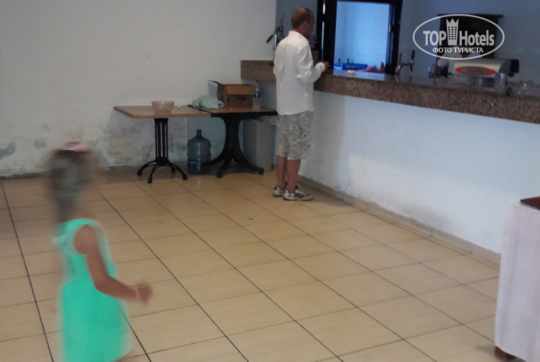 3. Ну и самое главное - СТОЛОВАЯ, которая громко и пафосно называется рестораном. К слову - кондиционеры там тоже работают временами. Утром вентиляторы на улице включали в 8 утра, кондиционеры не работали вообще. В обед и ужин вентиляторы и кондиционеры работали, но они не успевали охлаждать помещение. Запахи - еды, потных тел, вонючей воды, еды и затхлости. Подойти к "бару" вообще невозможно - вонь и антисанитария!!! (фото прилагаю).