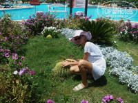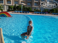 Аквапарк и бассейны хорошие. Бассейнов много, чистят их каждый вечер, глубина разная – от 50 до 160 см. Возле каждой горки и бассейна – работники, помогают все сделать правильно и следят за порядком. Горки работали с 10-00 до 12-00 и с 14-30 до 16-30. Бар в бассейне (в воде) платный – за 2 $ - заранее приготовленный фреш из холодильника, очень дорогие фрукты (например, один апельсин –1 доллар), возле бассейна – безалкогольные напитки по принципу самообслуживания. В баре около моря был фастфуд, сладости, овощи и питье (включая алкоголь). С 15-30 выдавали мороженое по малюсенькому шарику в маленькие баночки. Правда, можно было брать несколько. Мороженое, как правило, к 16-00 уже заканчивалось.