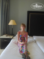 Наш стандартный номер в левом крыле на 4 этаже был достаточно чистый – большая двуспальная кровать, дочке принесли дополнительную удобную кровать. Есть два мягких кресла, плоский телевизор, чайник и два стакана. Чай, сахар пополняются ежедневно при уборке, кофе не было. Воду дают один раз при заселении из расчета 0,5 л на человека в день. Если не хватает – можно брать в кулерах на этажах. Шторы и кресла, конечно, «подуставшие» и не очень чистые, а в остальном – нормально. За 1 $ крутили из полотенец каждый день разные фигуры. Полотенца меняли по требованию, постель – где-то раз в три дня. Кондиционер, фен, сантехника работали исправно. Мыло, гель-душ, шампунь в дозаторах всегда были полными. С нашего балкона была видна часть моря и мечеть, в которой в 4-30 утра начинались молитвы. В первые дни это раздражало, потом привыкли и не просыпались.