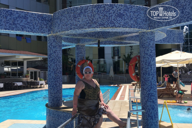 Отдыхала с мужем, мамой и с дочкой 1 год и 2 месяца. С 7 июля по 15 июля. В целом всё не плохо. Но есть ряд минусов, которые невозможно не заметить! 1. Заявленный песчаный пляж отсутствует! Ужасная галька, от которой на следующий день ноги были в ссадинах и мозолях! Заход в море просто адский! Каменные булыжники от которых все ноги в синяках и нужно иметь определенную сноровку, чтобы зайти в море! С маленьким ребёнком на руках это сделать просто не реально!!!! Мест под навесом на всех не хватало, и людям отдыхающим с маленькими детьми нужно бежать с самого утра занимать лежаки заранее. 2. Персонал не русскоязычный, но это не проблема, все говорят по английски. Встречался персонал не приветливый, даже негативно настроенный. 3. Сам отель нормальный, но отсутствие кондиционеров в местах общего пользования, таких как холл, рестораны, бары-это просто ужас! В ресторан не хотелось идти, потому что от жары и духоты кусок в горло не лез. 4. Питание как везде. Как во всех 4* отелях, но никак не в 5*. Из морепродуктов только рыба и все. А в целом питание нормальное, лично мы приехали отдыхать на море а не обжираться. Фруктов и овощей было достаточно. 5. Уборка номеров на 3 балла. Убирают поверхностно, даже не смотря на то что у на. был суууупер маленький номер для четверых человек!!!!!!! (я таких маленьких номеров не встречала даже в 4*) номер убирался для вида и то только после того, как мы оставили уборщице чаевые! и это при всем при том, что у нас был маленький ребёнок в номере!!! Полотенца меняют по требованию, сейф платный, wi-fi оставляет желать лучшего, мини-бар платный. Дорога до моря хорошая, через подземный переход. И конечно же самое главное, что хочу отметить, это дорога от аэропорта, просто убийственные 3 часа!!!!! лететь до Турции и то меньше, чем ехать до отеля! Этот отель не стоит таких мучений, если можно выбрать такие же 4* поближе!