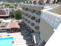 Кровати, жесткие из которых вылезают пружины, спать будет тяжело и жестко. Вонючий туалет, непонятно куда льющий душ, без регулировки. Горячая вода только днем когда она нагревается в бочке на крыше и то если никто не моется, короче как повезет, про утро и вечер можете забыть. Сушилки на балконе нет, так что запасайтесь веревкой, да и мусорного ведра тоже нет, только не большое в ванной. Слышимость в отеле высокая, плюс двери в номера, которые неудобно закрываются, вносят некий дискомфорт в отдых из-за нерадивых постояльцев данного шалмана. Расположен отель на тихой улочке, не далеко от универсама Мигрос. Но не расслабляйтесь спать вам не получиться, так как турки крутят одну и ту же музыку до ночи под говор пьяных персон. До бесплатного пляжа, ходьбы минут 10-15. Интернет плохой.