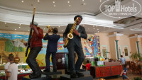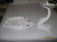 Оформление документов и заселение происходило в 23 .00 по местному времени.Прилет был поздний ,но заселили оперативно, презент давали, потому что хотели номера рядом с сестрой. Когда мы зашли на ресепшн у нас отобрало дар речи - холл был полностью заполнен местными отдыхающими. оказалось у них праздник после Рамадана- Разговение.На всех быстро одели браслеты и пригласили на поздний ужин. Но как оказалось номера рядом не дали ,потому что отель был переполнен местным населением, но пообещали сделать это на следующий день,что и сделали,хотя пришлось настоять на своем и нам дали сьюит. Уборка номера ежедневная, меняют бельё также каждый день. В номере есть чайник, чай, кофе, сахар в пакетиках. Ежедневно даютт 1,5 литра воды ,а также можно брать воду в кулерах. Оставлять или нет за уборку доллар - это личное дело,но мы оставляли шоколадки,чипсы, доллары,когда что. Но убирался мальчик хорошо, качественно,жили мы в 36 корпусе.Его зовут Юнан.
