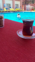 Кушать можно как внутри, так и на веранде вдоль бассейна (углом 10х15 м, наверное, вокруг один ряд шезлонгов) Внутри жарковато, на веранде осы)) Каждый выбирал сам наименьший дискомфорт) На веранде же есть бар (оно один в отеле), рядом небольшая сцена, место для танцев и столики. Около бара: кулеры с водой (всегда есть и всегда прохладная), автомат с соками (кстати, не порошковые, а сироп заливали). Некоторые стали наливать с собой в бутылки, появилось культурное объявление, что этого делать не следует. Рядом стол со стаканами-чашками-блюдцами (есть всегда) Тен с чаем (заварка отдельно, кипяток и большой выбор пакетированного чая) и крутая кофемашина (американо, эспрессо, капучино, кофе с молоком, горячий шоколад, горячее молоко) Я сам кофе не очень люблю, но тут попробовал всё) Заправляли тоже при мне - большие пакеты с молотым кофе Чибо, сухое молоко) Это все работает с 10 до 23 часов.