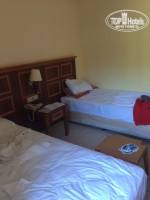 Номер. заявленные 25 метров - это размер всего номера, а не комнаты. Комната метров 16, наверное. Стандартно: с одной стороны - полка-стол-тумба с минибаром (2 бутылки воды при заезде), с другой стороны кровать-тумбочка-кровать. заявлено, что все номера в отеле стандартные 25 м., я еще подумал: а куда ставить допкровать, если втроем? Других номеров не видел. Из удобств - ест-но унитаз, фен, ванна с душем, вода уходит плохо, попросил прочистить, не помогло. Заводится не стал, делали напор поменьше. два кусочка мыла. 1 ножное и два небольших полотенца (на следующий день по просьбе доложили два больших полотенца).