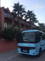 Отель. Расположение и территория. Отель находится в самом конце Кемера, у подножья горы. Через дорогу - лес и сразу крутой подъем, непролазная чаща. Так что погулять в сосновом бору нет возможности. До пляжа, я уже писал возит автобус. Расписание удобное. Если за один рейс всех не увозит, то делает еще один, даже если будет один человек, но надо обозначиться, чтобы он вам показал рукой круг - мол вернусь сейчас. Вечером в 21 он едет в центр Кемера к фонтанам и памятнику Ататюрку. Пешком от отеля до центра далековато. Мы один раз опоздали на автобус от пляжа, поехали на такси)) "Хау мач?" - "5 доллар" - "ОК", когда опоздали второй раз я сказал, что у меня только 3 доллара осталось - нет проблем, довезли)