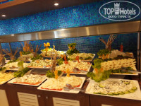 В предыдущем отзыве туристки из Минска говорилось о жутких очередях в столовой. Я считаю, что мы кушали в ресторане, это во-первых. Отступление. Официанты работают неплохо. а одна смена так вообще отлично (с 4 по 10 июля как раз были они) Порхали между столами, всё быстро убирали и накрывали столы вновь, как-то легко и радостно. Скатерти, приборы, салфетки. Но потом видно смена стала другая, быстроты поубавилось, улыбок тоже, стало казаться, что работа у них ну очень сложная(( Но всё равно дело спорится. Туристы вечно что-то разбивают и проливают, убирается незамедлительно. Чисто, светло, атмосфера. Ресторан, не столовая))) Так вот очереди, во-вторых. Перед ужином готовили на гриле шашлыки, рыбу, котлетки необыкновенные, запах потрясающий, слюнки текут. В 19.00 открывался ресторан и толпа отдыхающих "голодных" туристов выстраивалась у гриля. Двое поваров очень быстро накладывали страждущим их долю (немалую), но нас-то ооочень много, отсюда очередь. Человек 20 продвигаются вперёд, на месте не стоят. По две порции никому не дают. Один турист, одна тарелка, одна порция (а иначе очередь с места не сдвинется) Мы подходили по-очереди все трое, ничего страшного, 5 минут постоять не проблема. Да и куда торопиться? Мы же на отдыхе. Придите кушать к 20.00, никакой очереди нигде нет. И лотков пустых нет. Их постоянно подвозят и меняют на полные. Да, невелико разнообразие, хотелось бы больше рыбы. Тушеная морковь не удивляет и не возмущает. Это очень полезный продукт (хоть я её и не очень жалую). Всякую зелень свежую и тушеную надо кушать на отдыхе, товарищи. Это же отдых, не надо организм перегружать килограммами мяса))) Сладостей было достаточно. И торты , и пирожные, и кремы, и варенья-джемы потрясные, и мёд в сотах, и рахат лукум, и халва, палочки да печеньки всякие. Что же ещё надо тем, кому кажется, что в Инсуле этого мало.... Баров на территории полно. Спиртное разное, коктейли вам сделают, какие скажете.