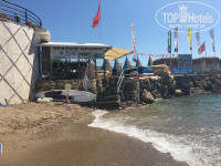 Пляж песчанно галечный находится в 50 метрах от отеля , вход пологий , не сразу глубоко , с детьми очень удобно , море чистое , тёплое когда большие волны немного мутнеет.Пляж чистят , иногда заплывает мусорок в виде пластиковых бутылок и тп . Лежаков на пляже достаточно , ввиду того что иностранцы в большинстве распологаются возле бассейнов . На пляже есть гидроскутеры бананы и тп . Бара на пляже нет , но он в 30 метрах от пляжа рядом с бассейном . Бассейн один но довольно большой есть еще горки для детей .Вода в бассейнах довольно хлорированная детям лучше брать очки.