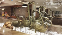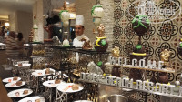 В ресторане чисто, скатерти в прилмчном состоянии, официанты подходят, гели для душа целый наборчик стоял в ванне и еще куча всякий мелочей. Каких? Набор ниточки иголки, губка доя полировки обуви, пакетик с лрготипом, кошелечик, папка с бумагой с логотипом отеля и конверты)