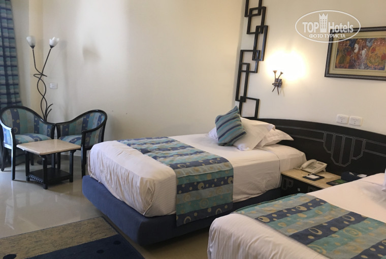 Приехали утром в 10 часов, нас отправили на завтрак, и сразу мы очень расстроились. В глазах почернело от количества арабов и их нахальности. Лезут руками в еду, влазят без очереди...ну просто жуть, хотелось кого нибудь ударить тарелкой)) Но через пару дней их стало то ли меньше, то ли привыкли. После завтрака пришлось подождать часа 2 до заселения. Совсем не стесняясь на ресепшене нам предложили заплатить за хороший номер. И действительно нам дали отличные номера в 16 корпусе, возле лобби и рядом с бассейном. Уборка конечно не айс, но немного освежали. Если вдруг забыли доложить полотенце, один звонок и их принесли нам аж три. Холодильник слабоват, у друзей он вообще грел. По питанию - не фонтан, но голодными не останетесь. Больше всего нравился обед в Гриль Хаусе, там не было арабов и поаккуратнее чем в главном ресторане. На ужин тоже неплохо: говядина, курица, рыба...на любой вкус. Анимация днем никакая, пару раз видели как играли в дартс, в водное поло звали почему то только арабов. Вечером в 21.30 были разные шоу: шоу с коброй, факир шоу (где нам довелось поучаствовать), огненное шоу.