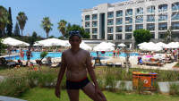 2) Отель просто шикарный, других слов нет ! Территория ухоженная , с цветами и фруктовыми деревьями. В крытом бассейне в здании можно плавать в дневные жаркие часы , в остальное время много бассейнов кругом , но лежаки надо часов в 7 утра занимать ( нам бассейны не интересны - мы на море приехали- вот там и были весь отпуск)