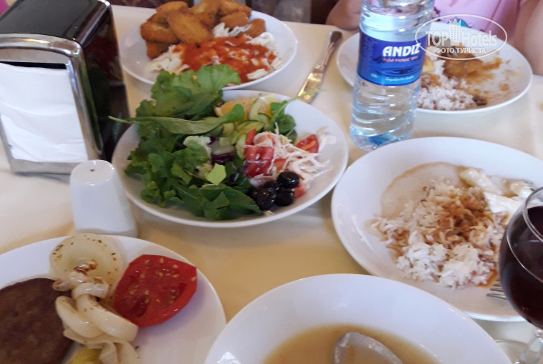 Отдыхам в этом отеле с 01.08.17. по сей день (04.08.17). Перед отъездом начиталась плохих отзывов, даж ехать не хотелось. Но по приезду все сомнения развеились. Отдыхаю с дочей, ей 8 лет. Заселение после 14.00. Приехали в 13.30, пошли пообедали, заселили в 14.40. Давала при заселении 10$, но Ольга, рускоязычная девушка на ресепшене, мне их вернула) Бунгало, первый этаж, 2-о здание от дороги, сантехника работает, убирают хорошо, полотенца меняют каждый день, чаевые не оставляю. Бунгало подальше от амфитеатра, так что ночью тихо, соседей не слышно, в 5.00 утра в мечете через дорогу начинают петь, но это не долго, не напрягает. Море чистое, лежаки всегда свободные, в основном все отдыхающие у бассейна. На пляже убираются. Преимущественно отдыхаюшие турки, но руссие тоже есть. Кормят хорошо, фрукты есть всегда, в отзывах писали что они в драку, но это не так, всегда в наличии есть, всегда сытые, во сколько не приди, некоторые отдыхающие говорят, что есть нечего, хрен знает что им еще нада! Зажрались наверное! Территория очень зеленая, красивая, чистая, все в тени. Заход в море хороший, с лева от пирса, брали с собой тапочки специальные, но они не пригодились, до моря шли в шлепках, потом метр по камушкам, а потом мелкие камушки и песочек. Есть места где посидеть, отдохнуть. Каждый вечер анимация, первый день выступали акробаты, очень понравилось, второй день выбирали мистера барбаросса, тож прикольно, я в жюри была), третий вечер смешные сценки, ну так себе. Вчера поздно вечером пахло канализацией, но утром все норм. Отель семейный, молодеже может будет скучно. Детишек очень много) Вечером дискотека есть, но мы там не были, спать уходили. На ресепшене купила вай фай за 5$ на 7 дней, ловит везде, в номере, на мере ... В отеле нам очень нравится, конечно есть к чему придраться если захотеть! И в первые дни не загорайте, находитесь в тпни, ходите и купайтесь в футболках! А то как мы, обгарите) Нас с дочей все устраивает. Фото добавлю.