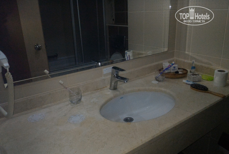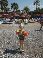 Отдыхали 2 взр и 2 детей ( 3 года и 6 лет). Отдых был уже изначально подпорчен 12 часовой задержкой рейса из Москвы авиакомпании Россия ( рейс 5857). В результате сутки отдыха потеряны, приехали в отель на след. день в 9 утра, дети плачут.от усталости..в отеле сказали, что номеров нет и ждать нужно до 12 часов. На ресепшен даже не проверили фамилии, что мы уже значимся заселенными...пока не поругались и не взвали старшего менеджера. Поругались-заселили. По-поводу номера: он маленький! Если у вас 3 детей то разместиться уже будет негде...с двумя детками развернуться было негде. Доп.диванчик сразу сломался, заменили быстро. Сам номер не первой свежести...на покрывалах и шторах пятна, штукатурка на потолке потрескана, тв из прошлого века, также как и кондиционер, который особо в жару не спасал. В минибаре только бутылка воды. Воду всегда приходилось просить. Санузел мизерный ( чуть-чуть больше санузла в пятиэтажках) весь в мыльных разводах, туалетное сиденье желтое, шторка в ванной как сломалась, так никто и не починил, хотя просила об этом два раза. Нет в освежителя воздуха, так же как и вытяжки в санузле (выводы делайте сами). Есть фен, который работает по принципу- жмешь кнопку-воздух идет, отпустил-выключился...пока волосы высушишь, отвалится палец :) Номер убирают поверхностно, то есть протирают видимые куски пола и все. Что там под кроватями и за ними лучше не рассказывать....ужас. Вид с балкона хороший ( номер 4203). Хочу сразу сказать...не доплачивайте, как мы за "больший" размер номера туроператору...это развод...там все номера стандартные!!!!!! Территория отеля очень маленькая..три пальмы два куста...правда ухоженная. Бассейны понравились, чистили каждый вечер. Wi-Fi у нашего номера ловил хорошо, в ресторане ловил, в лобби ловил. Сигнал иногда пропадал. Питание: Еды хватало, вкусно,но каждый день одно и то же...очень много острого со спицефическим вкусом, на любителя. Утром рисовая каша ( один раз была и рисовая и гречневая с молоком), омлет и яичница,вареные яйца и всякие разности для бутербродов. Обед и ужин одинаковые, только на ужин еще готовят на гриле рыбку и есть спагетти ( которые понравились детям). Много сладостей. Фрукты арбузы, яблоки, апельсины, нектарины, абрикосы ,сливы (последние три сметали сразу). В снекбаре с 12 часов можно было поесть бургеры с картошкой фри. С 15 до 16 пончики с 16 до 17 мороженое ( в воскресенье почему-то мороженого не было). Правда снекбар чистотой не отличается...полно мух, вонь непонятного происхождения каждый день у автоматов с соками, туалеты грязные. Отдельно про пляж: так как мы ехали с маленькими детьми, то нам было очень важно , чтоб пляж и вход в море были хорошими. Как нас уверил туроператор и отзывы там пляж мелкая галечка....ЭТО ВРАНЬЕ!!! Там реально очень неприятные камни, которые продолжаются и в море, пока не упадешь в глубину...когда волны, то эти камни очень больно бьют по ногам. Поэтому деткам даже на берегу поиграть с волнами будет не очень комфортно. Специальная обувь особо не спасает! Плюс в том что само море конечно замечательное, теплое и чистое. Анимация: днем разные аквааэробики, дартс и тд...Детская анимация никакая!!! Каждый день реально одно и то же...все становятся в круг и под одни и те же песни!!!!! ( на всех языках , кроме русского) делают движения....дети уже на второй день знают эти движения наизусть...потом ведущий всем расска