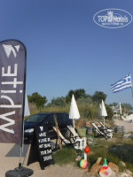 Инфраструктура пляжа "White Beach" скромная: 1 душ, 6 биотуалетов (раздевалок???) бесплатно, прокат спортинвентаря (мячи, бадминтон). И снова устрашающая табличка "о запрете проноса напитков" "звериный оскал греческого бизнеса???". А вот спасателей на организованном пляже нет, не замечены они были и на пляже "Molos" - так что, господа отдыхающие, рассчитывайте грамотно свои силы. Пообедать на пляже тоже не удастся, разве что перекусить пончиками, кукурузой, которые наряду с сумками-кроссовками-текстилем и прочей дребеденью предлагают торговцы.
