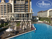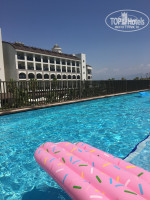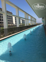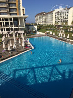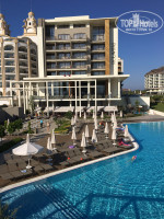 ТЕРРИТОРИЯ ОТЕЛЯ: не очень большая, но и не маленькая. Сам отель очень современный, интересный дизайн. Есть 3 бассейна: с горками, обычный и на втором ярусе длинный, с заплывом к номерам с личными выходом на бассейн. Там мы после обеда и купались, так как он был прохладный, а тот, что внизу оочень тёплый и там все время проводись активности: водное поло, аквааэробика, конкурсы.