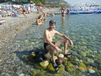 Дорога до моря всего 3 минутки, хоть и 2 линия. Но пляж очень маленький, лежаков крайне мало, хитрые бабки занимают их в 5 утра и уходят. Галька крупная, без коралловых тапок делать нечего.