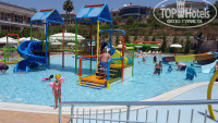 Территория: она на самом деле не такая большая , как на фото. От аквапарка ( крайняя точка отеля) до моря 5 мин спокойным шагом. Аквапарк шикарен. Думаю это самый большой и жирный плюс отеля. Бассейн релакс в котором детям запрещено купаться : но нашим русским всё по барабану, люди отдыхают у бассейна, но им надо в этот бассейн соих детей пускать ( дети прыгают, орут, мешают людям релаксировать)))) ) Бассейн с воротами : нормальный. Нам он полюбился больше всего. Бассейн с мостиком : тоже хорош., но будьте готовы, что детки будут првгать чуть ли не у вас на голове ))))) Площадка детская ужасная-болото!!!!