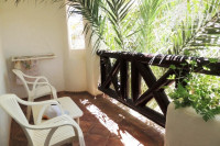 Номер, как в описании, оказался просторным, уютным, оборудованным всем необходимым. Раз в день в холодильник ставят 1,5 литровую бутыль с водой на каждого гостя. Очень порадовала терраса с "личной" пальмой. Изучая, с разных сторон отель, пришли к выводу, что наш балкон уникален, т.к. ни у кого не было такого тесного соседства с природой. Кстати, днём пальмовые листья выполняли роль жалюзи, прикрывая от палящих лучей нашу террасу. Уборка в номере ежедневная. Уборщики деликатно выбирают время, когда вас нет дома и наводят чистоту. Полотенца меняли ежедневно, постельное через два дня (на мой взгляд слишком часто, ибо мылись мы по 4-5 раз в день после моря, талассо, прогулок).