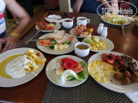 Отдыхали с друзьями в отеле с 30.07 по 07.08.2017. Летели с авиакомпанией Bravo из Киева, худшего авиаперевозчика я не встречала. Рейс переносили дважды, сутки просидели в аэропорту. 1день отдыха был потерян. Вместо положенного прилета в 12.00 прилетели в 3 ночи. На ресепшн нам пытались объяснить,что заселение осуществляется с 14.00, хотя по сути мы уже должны были заселиться полдня назад. Ситуацию работникам разъяснили, заселили очень быстро во 2-й корпус на 3-й этаж. Отдельно про номер. Он был абсолютно не готов, грязь и песок на полу, отсутствие полотенец. По нашей просьбе пол быстренько протерли, полотенца принесли. На этом уборка нашего номера была окончена. В следующий раз его убрали через 6 дней!!!!!!!!!!!! Постоянные походы на ресепшн и пресловутые 5 минут не помогали, деньги давали лично в руки уборщику, за что получили лишь чистые полотенца. Помогла лишь письменная жалоба на ресепшн. Ну да ладно а номере мы только спали и мылись. Мылись, если успевали... Отель был забит полностью, поэтому в час пик,когда люди возвращались с пляжа, до нашего третьего этажа вода просто не дотекала. Ходили мыться на улицу под душ возле бассейна. В остальном по номеру вопросов не было, кондиционер, холодильник, сейф работали исправно. Еще одна беда - это электронные ключи, они постоянно разряжались, нам объясняли, что виновата жара, приходилось бегать на ресепшн два раза в день, чтобы попасть в номер.