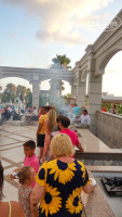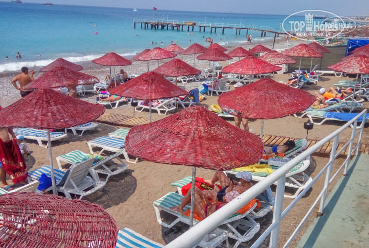 Отель расположен на очень узкой полосе земли от моря до дороги, соответственно пляж очень, не реально маленький, что негативно отличает его от пляжей соседних отелей с честными пятью звёздами. Нехватка земли приводит к невероятной концентрации всяких сооружений на микроскопической территории отеля. В некоторых местах это напоминает многоэтажный скворечник: над снек-баром рыбный ресторан, над детским клубом спортзал, всё налеплено одно над другим, причем новомодные требования к устройству приотельной территории заставляют владельцев этой старой рухляди продолжать городить огород, добавляя всё новые lego-детали к своей, приносящей ещё пока доход, и привлекающей бедных доверчивых туристов из российской глубинки, помойке. Но, обо всём по-порядку и начнём с пляжа: как я уже упомянул, линия моря очень узкая, пляжные грибки старые и изрядно потрепанные, места мало и где бы вы не устроились, через вашу голову будут постоянно ходить, носить мороженное, пиво, блины, бутерброды с соевым мясом, а также громко говорить: "Геннадий ты скажи мне, отец родной, я вот тут Альбертику взяла 3 блина ему хватит или ещё пару притащить?". В море пляж огорожен с двух сторон уродскими верёвками и в целом представляет из себя унылое зрелище. После одного посещения появляется стойкое желание никогда больше здесь не появляться и как-нибудь перебиться бассейном. Далее перейдём к спортзалу, который находится над детским клубом и я даже не буду ничего писать об этой ацкой помойке, фото не лгут и вы сами сделаете соответствующие выводы, упомяну лишь, что кондиционера там нет, крыша нагревается и в зале стоит примерно 37-40 градусов. Занимайтесь спортом в нашем фитнес-зале, дорогие русские туристы, вы же звери, вам же всё равно как бы хотят сказать нам гостеприимные турецкие отельеры и подтверждают свои слова отличной инструкцией на русском языке (см. фото), что конечно говорит о навязчивом желании угодить любой прихоти капризных туристов из России и искреннем уважении к ним. Напротив, через дорожку - на плевке земли 40*40 метров расположены: снек-бар, рыбный ресторан, форум для вечерних представлений, детские горки, раздевалки, 2 душа, в которые хорошо воспитанные родители приносят своих маленьких деточек пописять и покакать (ну а где ж им ещё какать, ну не в номер же бежать в конце-концов из-за этого пустяка, они ж вам не мешают, а если мешают не смотрите). Да, забыл сказать никаких немцев, итальянцев, французов, румынов, венгров, чехов и даже албанцев в этой выгребной яме нет и никогда не бывает, исключительно гости из России, Украины, Белоруссии и изредка бедные турки, ооочень бедные, самые бедные в округе заезжают на пару дней с семьями. Теперь про очереди, надо признать, что в той или иной степени они есть в каждом отеле, почти в любом. Но в других отелях это не имеет патологической терминальной стадии и выглядит примерно так: подошёл, 2-3 минуты, отоварился и отошёл. В Холидей Гарден очереди имеют следующий вид, для примера возьмём только ужин. Ужин начинается в 19-00, в 18-40 у столовой (потому, что это не ресторан) стоит толпа (см. фотку), очередь плавно переходит на лестницу и поднимается на этаж выше. Столовую открывают с задержкой 5-7 минут, после чего 10-20 человек сходу пробегают зал с правой стороны, выбегают на улицу, сталкиваясь, издавая радостные вопли и встают в очередь за тем, 